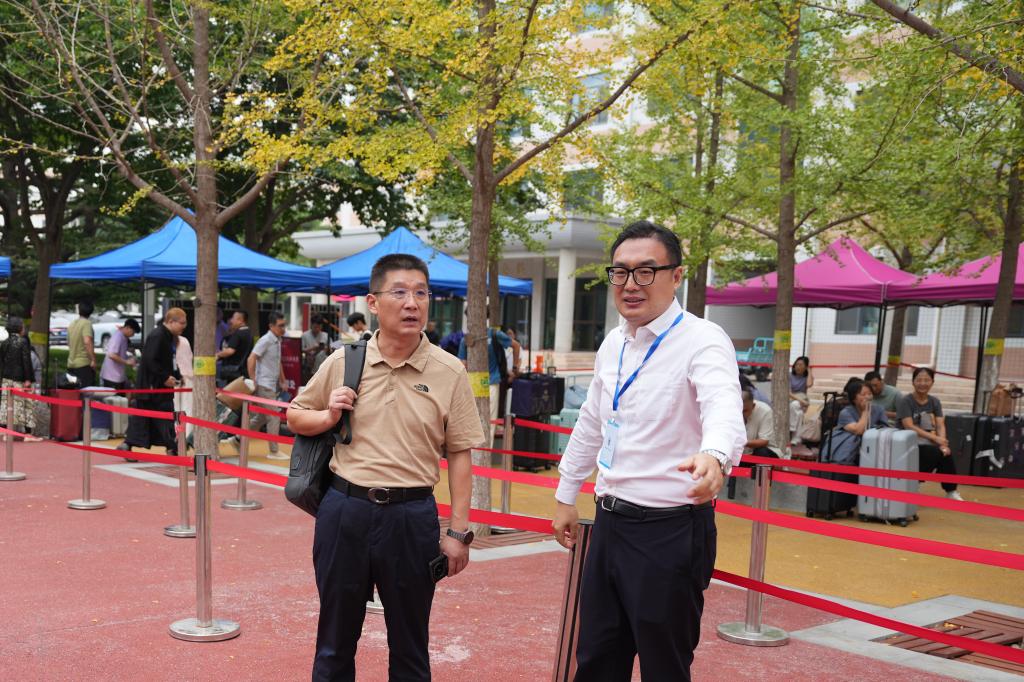 迎新当日,金沙集团1862cc成色党委书记李汉军、院长蔡如海一行来到迎新现场,与正在办理入学手续的新生和家长亲切交流,详细了解报到进展,并专程慰问了坚守在各岗位的师生员工,对他们积极服务迎新工作的行为给予高度认可。