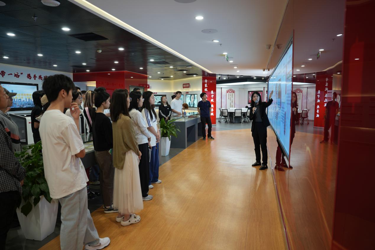 同学们首先参观了教育基地的展示区,包括历史区、品种区、理念区、投资者保护区、模拟体验区。中信建投证券的陈晴虹老师对同学们的到来表示热烈欢迎,并对各个区域展示内容做了详细的介绍。同学们跟随陈老师的讲解,回顾了资本市场发展,了解了证券投资品种相关知识以及投资理念,增强了投资风险防范意识。参观过程中,陈老师时不时提出一些小问题,引导同学们参与互动交流,现场氛围热烈。